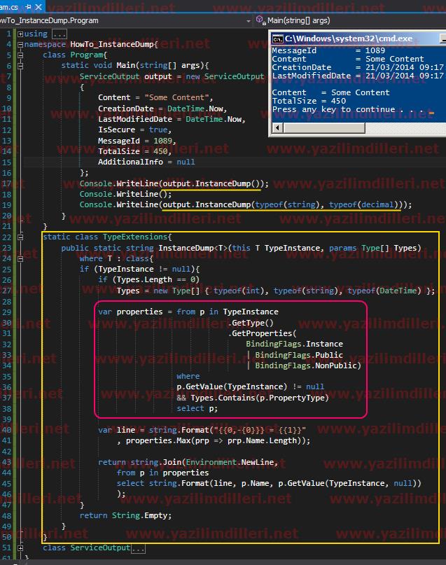 Çalışma zamanında bir nesne örneğinin basit özelliklerine ait değerlerini tek bir string katarında elde etmek ister miydiniz? Loglamalar da çok işe yarayabilir.