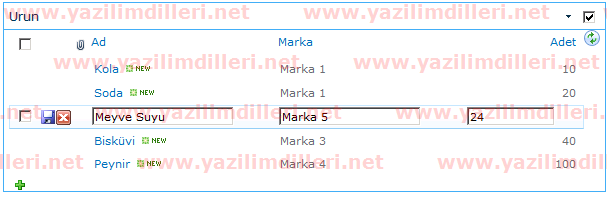 Yeni eleman ekleme butonuna tıklayalım. Tıkladığımızda yeni eleman ekleme alanlarının listenin aldında geldiğini görmekteyiz.