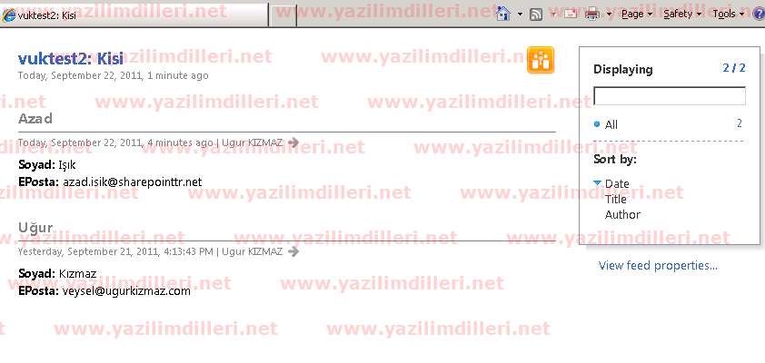 Internet tarayıcısının RSS listesine gittiğimizde liste adının RSS feedleri arasına geldiğini görebilmekteyiz.