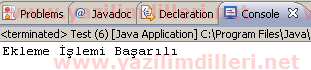 System.out.println("Ekleme İşlemi Başarılı");