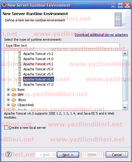 Açılan ekranda, yüklemek istediğimiz sunucuyu seçiyoruz. İstersek yükleme işlemini Download additional server adapters seçeneğiyle de gerçekleştirebiliriz.