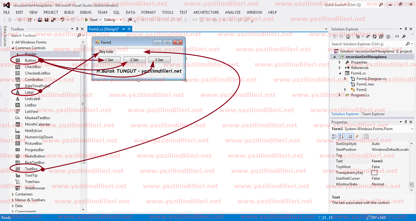 Yapacağımız 3 örnek için de seri kuralını şekilde ki gibi vermiş bulunmaktayım. Şimdi uygulamamızı yazmak üzere Visual Studio IDE'lerimizi açalım.