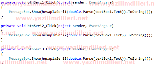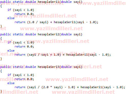 3 adet serimizi hesaplamak üzere 3 ayrı method yazdık.