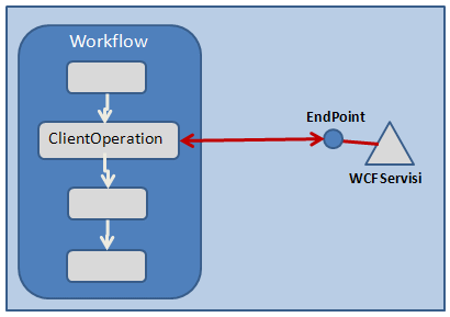 Herşeyden önce servis kullanan bir istemci geliştirilirken, Add Service Reference seçeneği ile proxy tiplerinin eklenmesi gerekmektedir. Oysaki geliştirdiğimiz örnekte böyle bir işleme başvurulmamıştır. Bunun yerine ClientOperation elementi için XAML tabanlı tanımlamalar yapılmıştır. Dolayısıyla yeni çalışma zamanı motorunun bu içeriğe bakaraktan servis ile iletişime geçtiğini ve fiziki bir proxy' ye ihtiyaç duymadığını söyleyebiliriz. Bir başka deyişle örneğin servis tarafında oluşabilecek bazı değişikliklerin WF tarafına bildirilmesi için bir referans güncellemesi yapılmasına gerek kalmamaktadır. Buda önemli bir avantajdır.