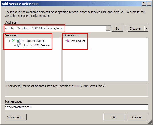NOT : Aşağıdaki ekran görüntüsü 17.4.2008 tarihinde yayınlanan WCF ile WF Entegrasyonu -1 makalesine aittir. Bu makaleden hatırlanacağı üzere SendActivity tarafından kullanılan WCF servisinin Host uygulama üzerinde ela alınabilmesi için Add Service Reference(veya svcutil ile komut satırından) ile proxy üretiminin yapılması gerekmektedir.