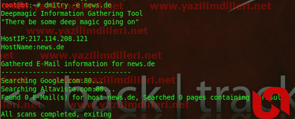 . / Dmitry-e hedef          Hedef sunucu üzerindeki mail adreslerini arar.