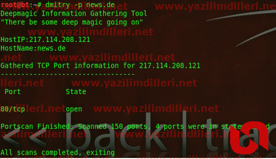 . / Dmitry-p hedef          Hedef sunucu üzerindeki TCP portları arar