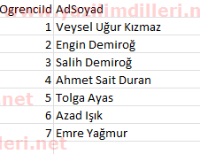 Öncelikle elimizde bir excel tablomuz olsun. Tablomuzda öğrenci kayıtları olsun.