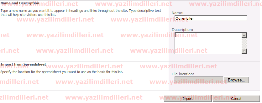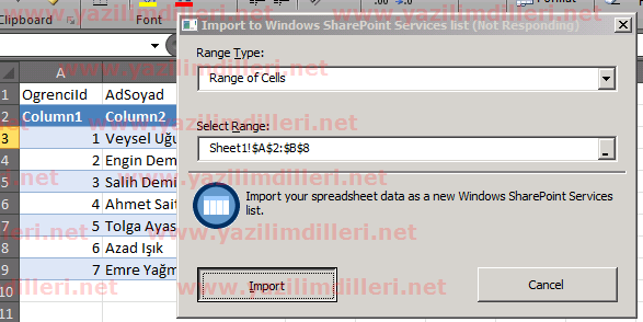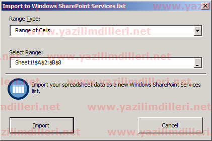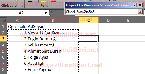 Sharepoint 2010 Excel'den Import İşlemi